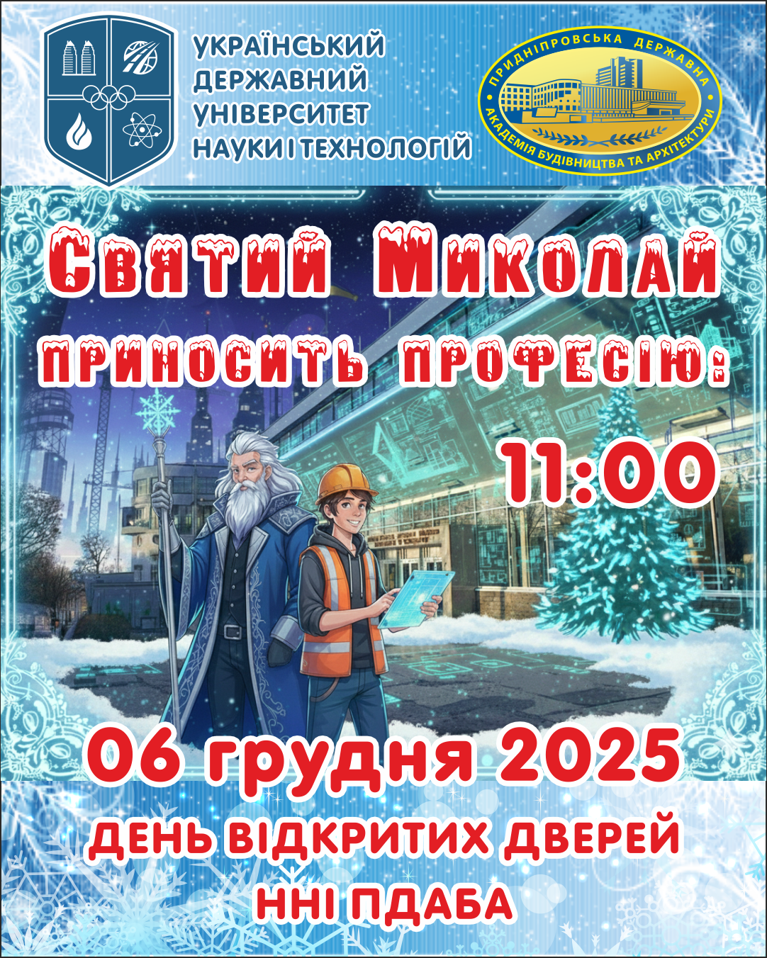 Запрошуємо майбутніх абітурієнтів, їх батьків та всіх, хто мріє про успішну кар’єру у сфері будівництва та архітектури, на День відкритих дверей Навчально-наукового інституту  Придніпровська державна академія будівництва та архітектури!