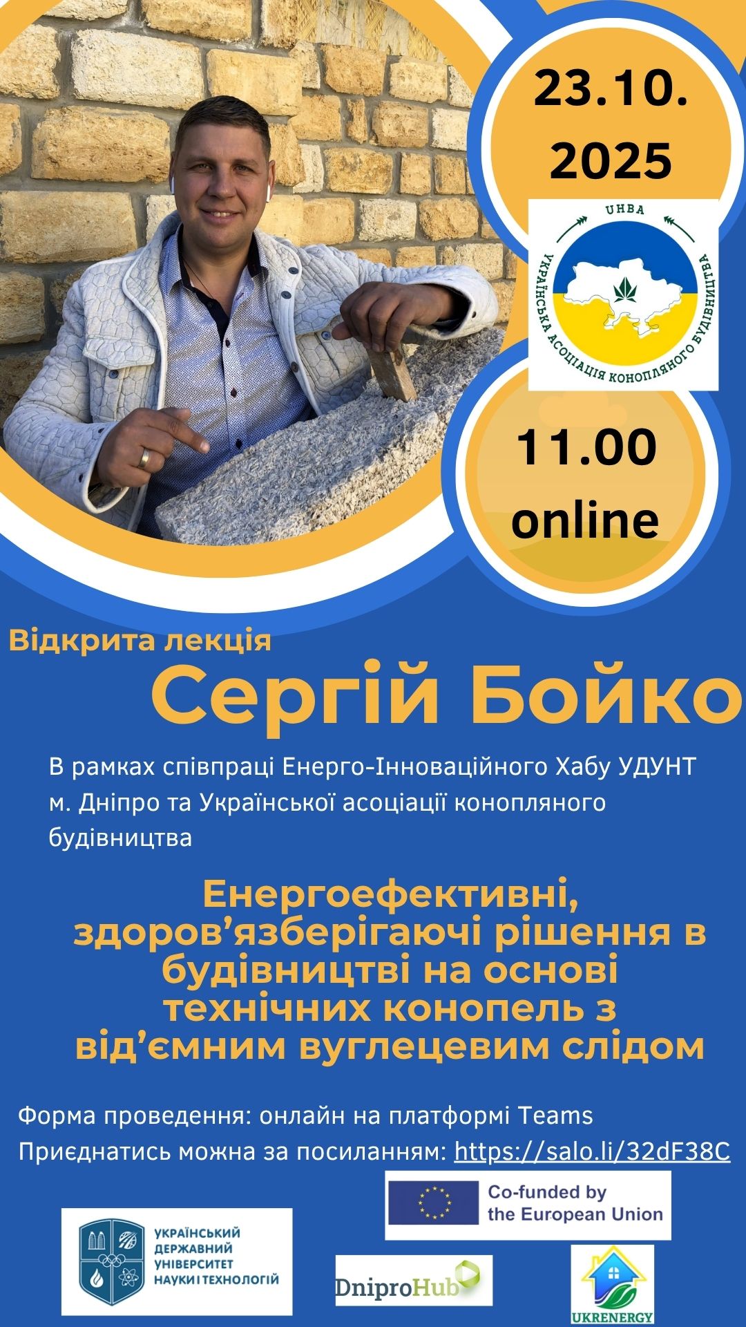 Онлайн-лекція на тему: «Енергоефективні, здоров’язберігаючі рішення в будівництві на основі технічних конопель з від’ємним вуглецевим слідом»